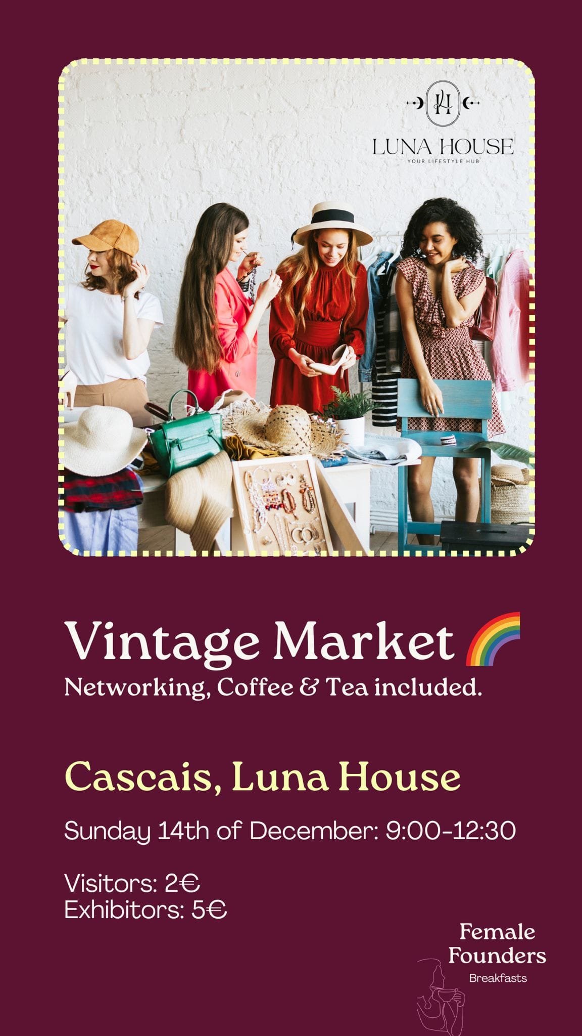 Discover unique vintage treasures, enjoy cozy networking, and sip complimentary coffee & tea at our first Vintage Market in Cascais!